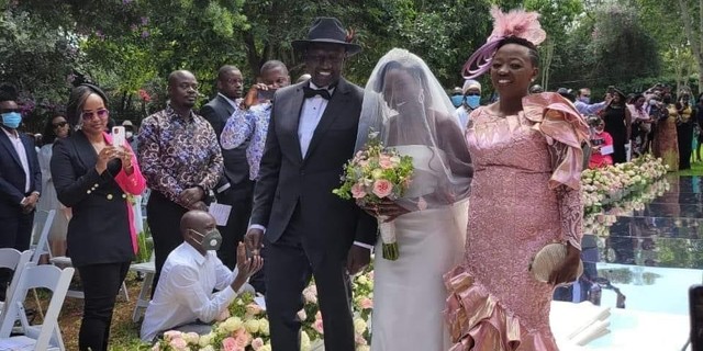 The bride was walked down the aisle by her parents, dp ruto and mama rachel ruto.